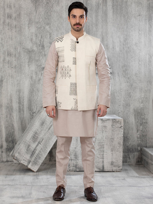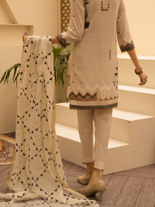 Off White Cotton Silk 3Pc Stitched - ALP-731