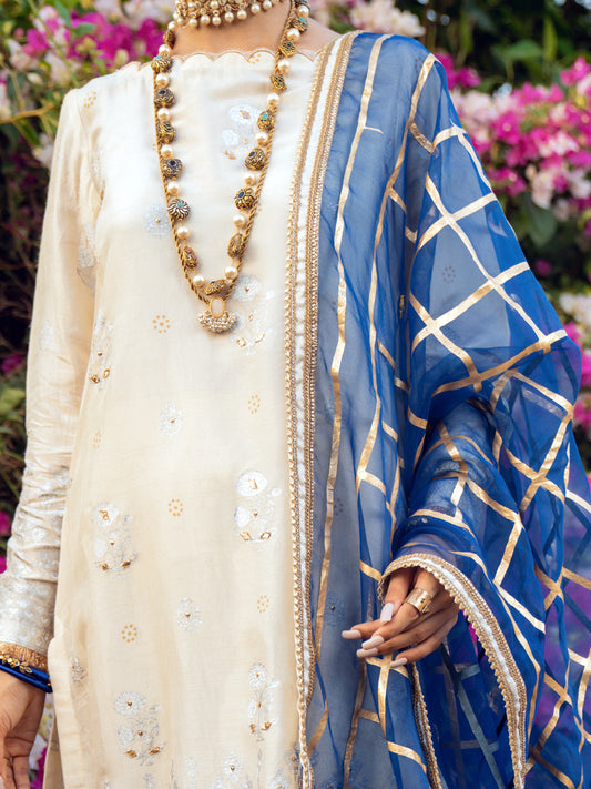 Off White Silk 3Pc Stitched - ALP-3PS-1193