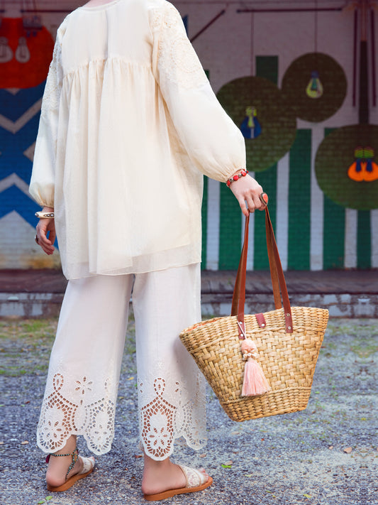 Off White Khaddi Net Tunic - ALP-LK-1353