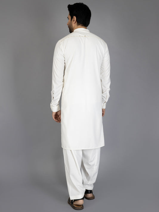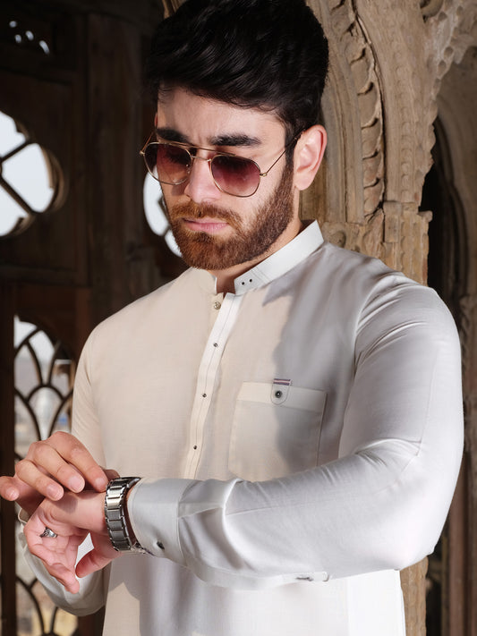 Off White Blended Kameez Shalwar - AL-KS-2816