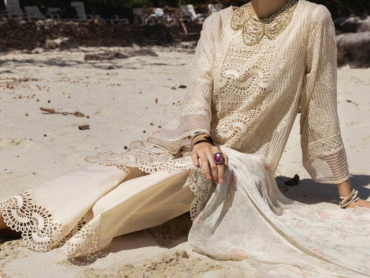 Off White Bemberg Chiffon 3 Piece Formal Stitched - AL-3PS-LS-308