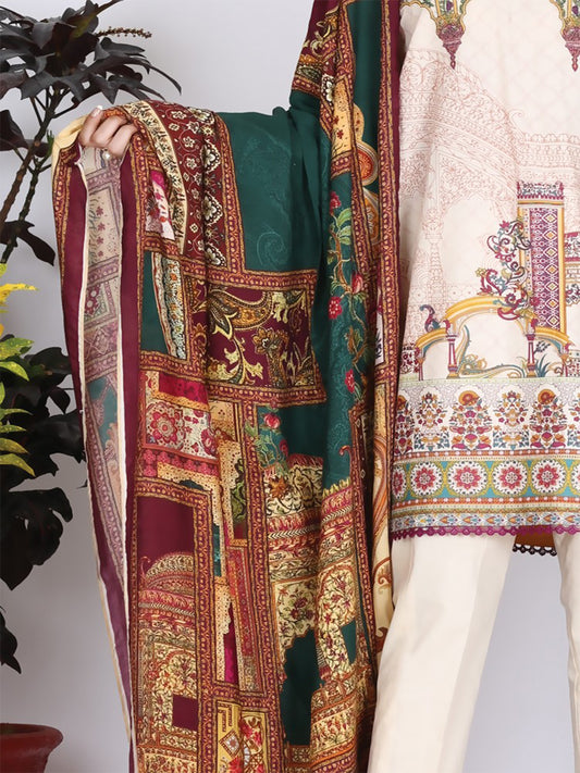 Off White Lawn 3Pc Unstitched - ALP-3PS-1084
