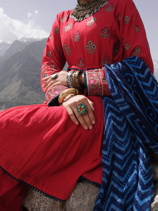 Pink Swiss Voile + Khaddi Net 3Pc Stitched - ALP-3PS-1059
