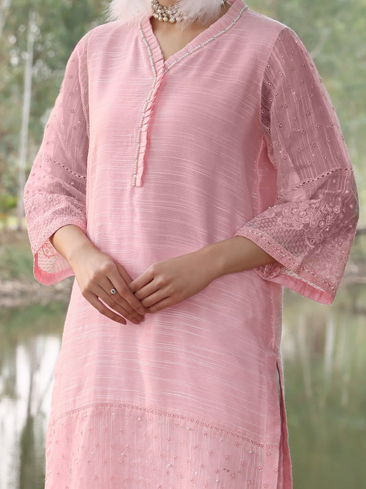 Pink Textured Kurta - AL-K-943