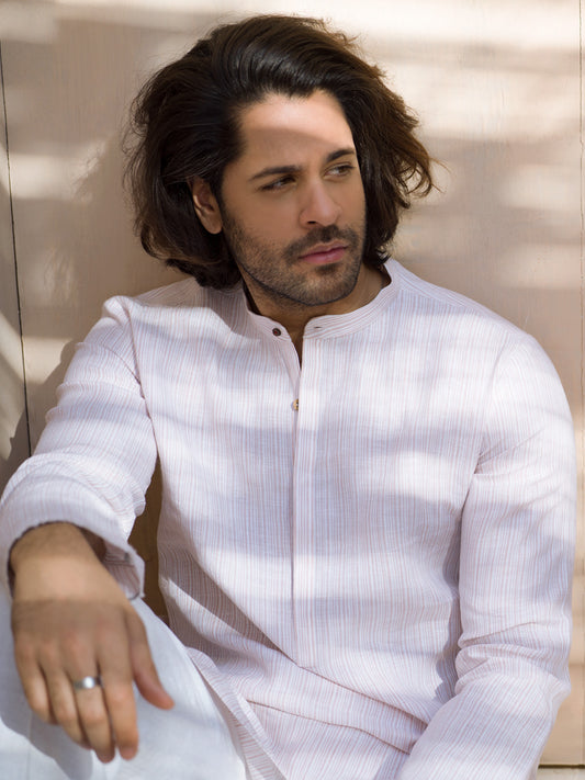 Pink Pin Striped Linen Short Kurta - ALCR-K-001