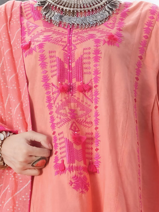 Pink Cotton Net 3Pc Stitched - AWP-213