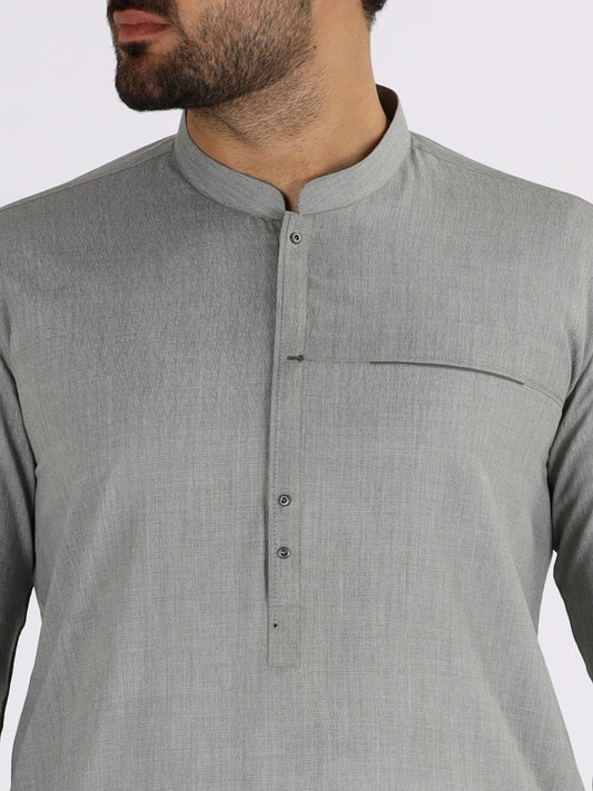 Light Grey Blended Kameez Shalwar - AL-KS-2480