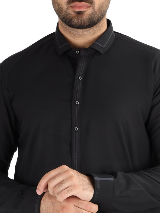 Navy Blue Blended Kameez Shalwar - AL-KS-2454