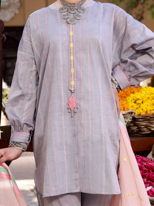 Light Grey Yarn-Dyed Jacquard 3Pc Stitched - ALP-3PS-1096