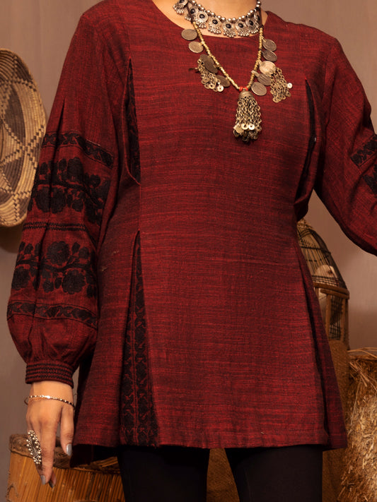 Maroon Yarn-Dyed Two Tone Tunic - AWP-LK-482