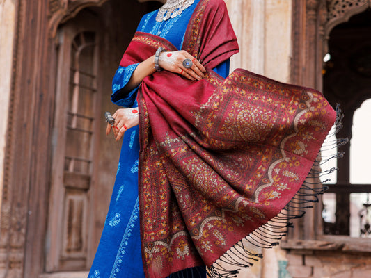 Maroon Yarn Dyed Shawl - AWP-ST-729