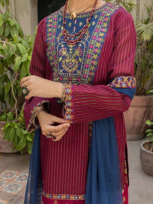 Magenta Yarn Dyed 3 Piece Stitched - ALT-3PS-LS-1130