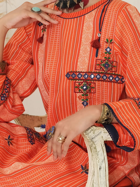 Orange Yarn Dyed Jacquard 3Pc Stitched - ALP-3PS-1051/S