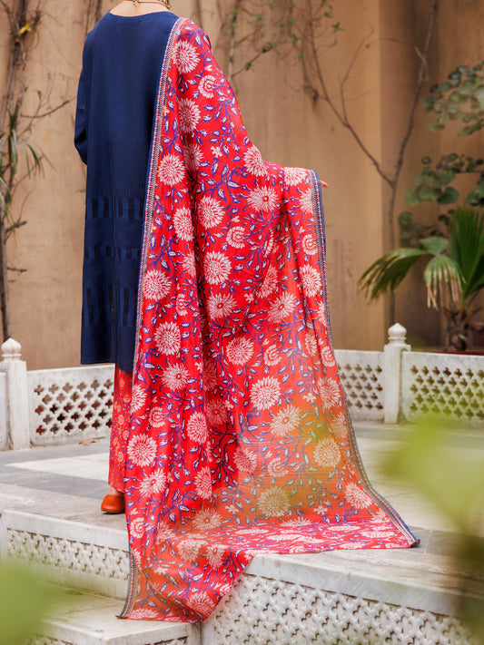 Blue Yarn Dyed 3Pc Unstitched - ALP-3PS-1932