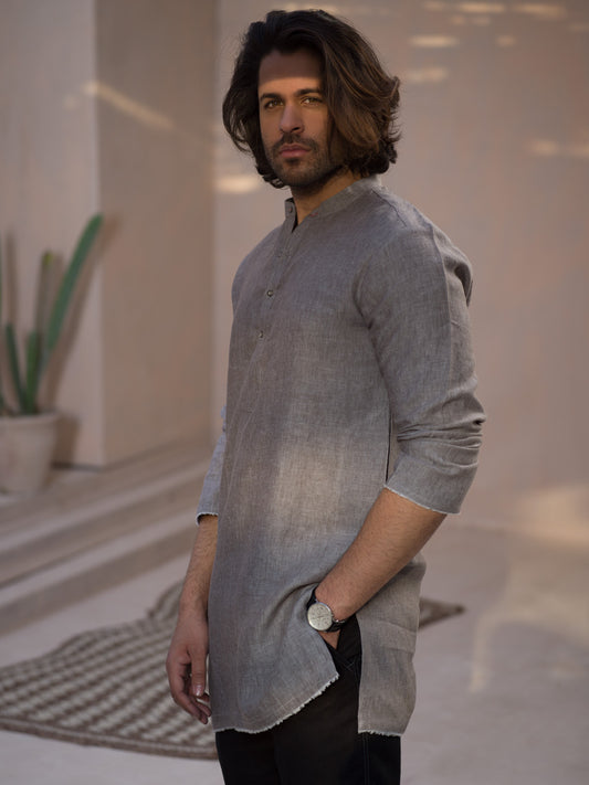 Grey Yarn Dyed Short Kurta - ALCR-K-005