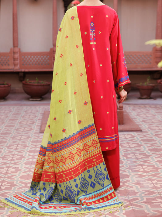 Red Yarn Dyed 3Pc Unstitched - ALP-3PS-2154