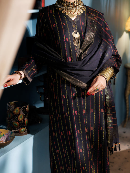 Black Yarn Dyed 3Pc Stitched - ALP-3PS-1891