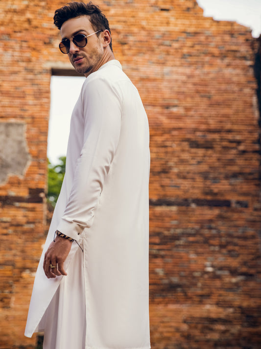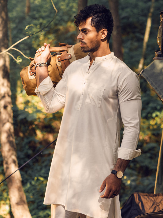 Off White Cotton Kurta Trouser - AL-KT-3060