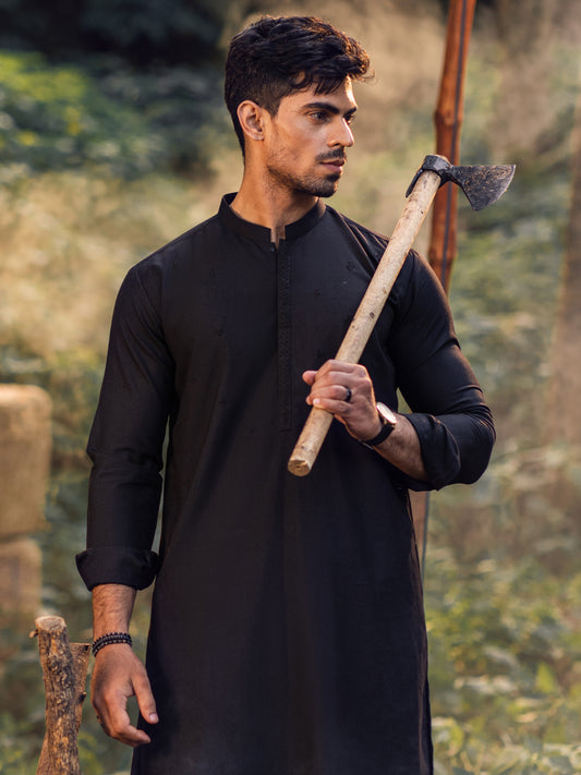 Black Blended Kameez Shalwar - AL-KS-2954B