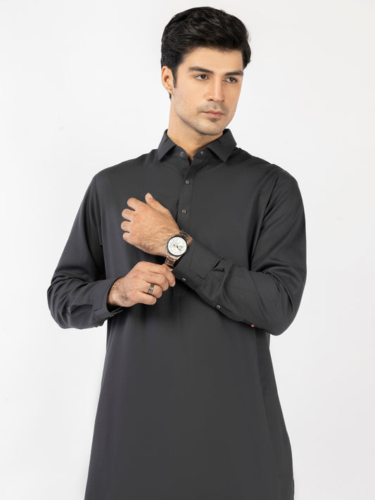 Charcoal Grey Blended Kameez Shalwar - ALWA-KS-521