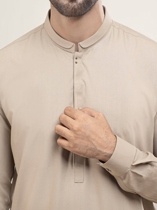 Fawn Blended Kurta Pajama - AL-KS-2492