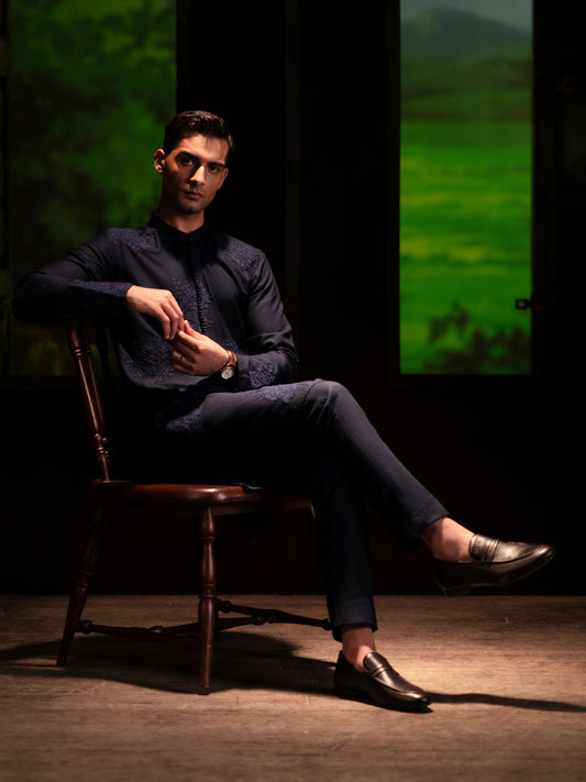 Navy Blue Blended Kurta Trouser - AL-KT-3126B