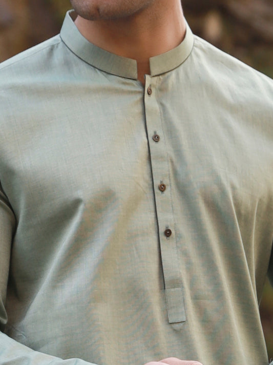 Olive Green Blended Kameez Shalwar - AL-KS-3165A