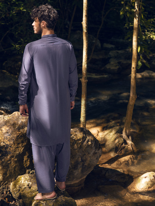 Brown Blended Kameez Shalwar - AL-KS-3147