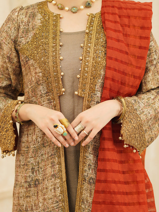 Beige Jacquard 3Pc Stitched - ALP-3PS-1166