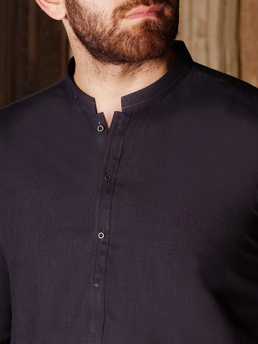 Black Poly Cotton Kurta Trouser - AL-KT-3046A