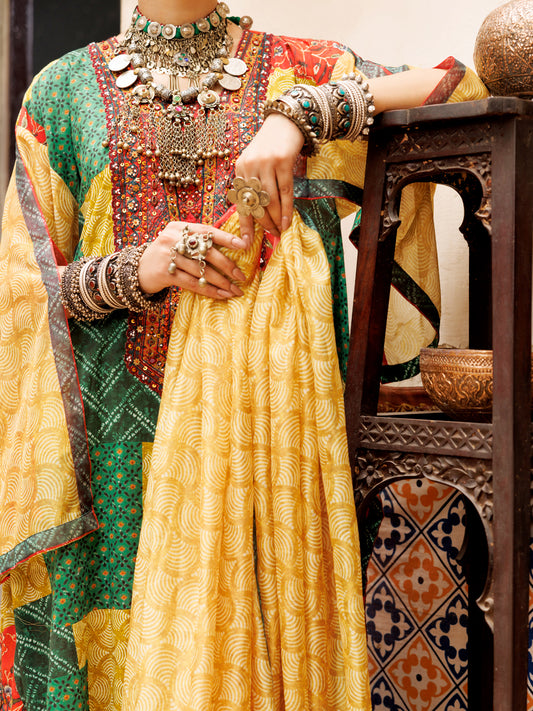 Gold Mesuri Net Formal 3Pc Stitched - AL-3PS-LS-491