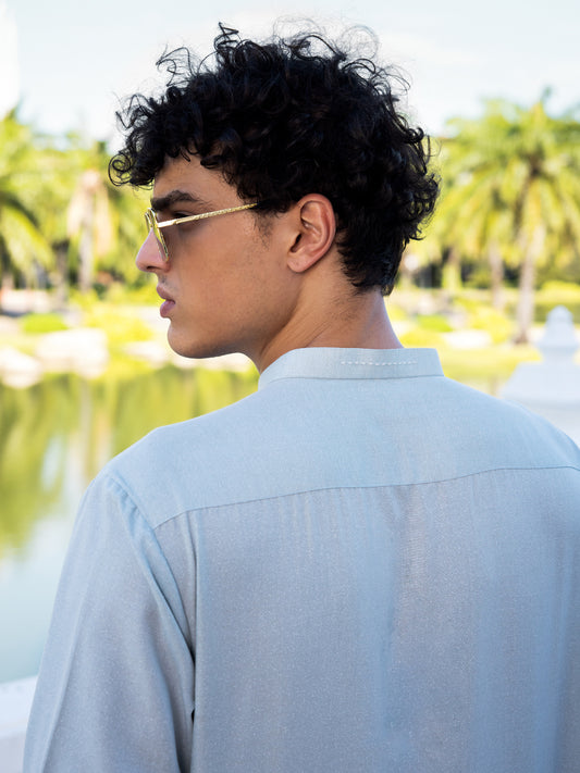 Sky Blue Blended Kameez Shalwar - AL-KS-3041
