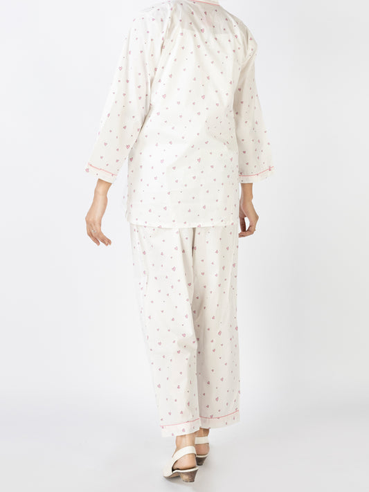 White Cotton 2 Piece Stitched Nightwear - ALT-LKS-NW-1004