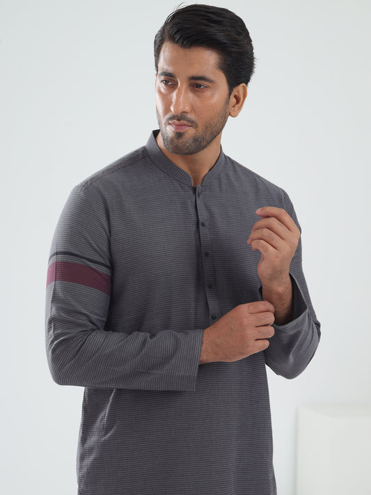 Black Stripe Dobby 3Pc Unstitched - ALP-3PS-1880