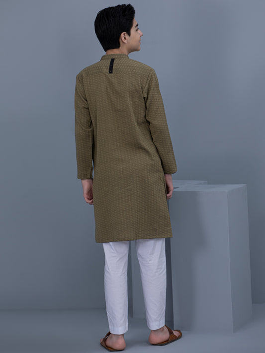 Dark Green Blended Kurta Trouser - AL-KT-3072