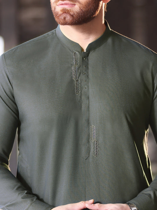 Light Gray Blended Kameez Shalwar - AL-KS-2605