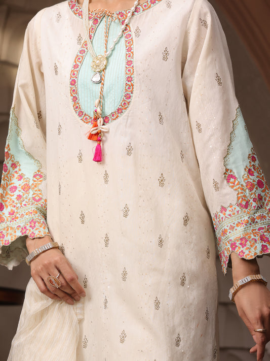 Off White Raw Silk 3Pc Unstitched - ALP-745