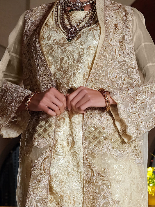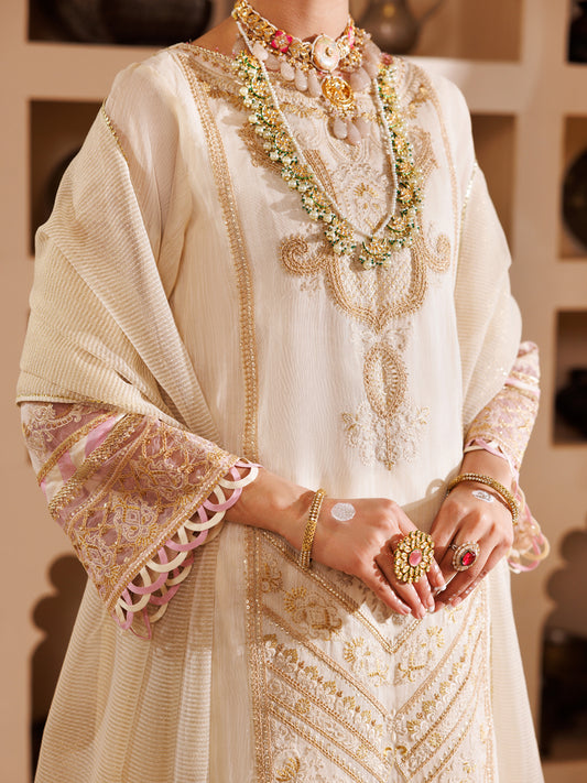 Off White Khaddi Shimmer Gold 3Pc Formal Unstitched - AL-3PS-LS-UN-457