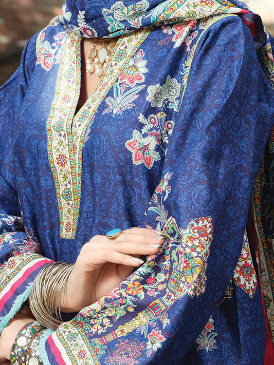 Blue Raw Silk 3Pc Stitched - ALP-3PS-2195