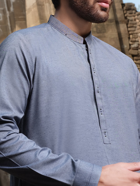 Grey Blended Kameez Shalwar - AL-KS-3036