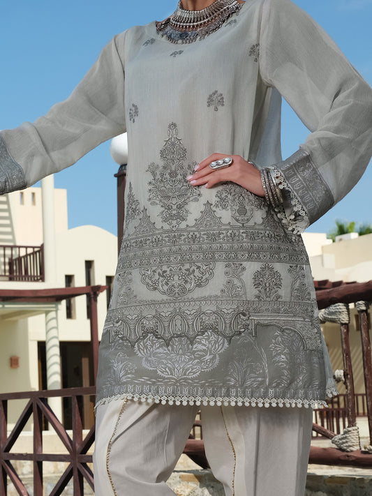 Grey Net 3Pc Stitched - ALP-3PS-909