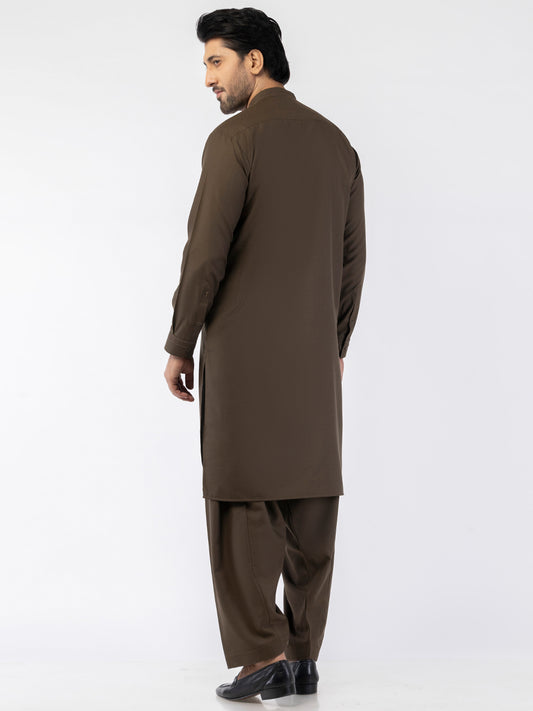 Brown Blended Kameez Shalwar - AL-KS-3188