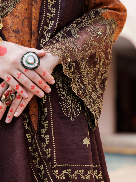 Brown Maple Silk 3Pc Formal Stitched - AL-3PS-LS-434