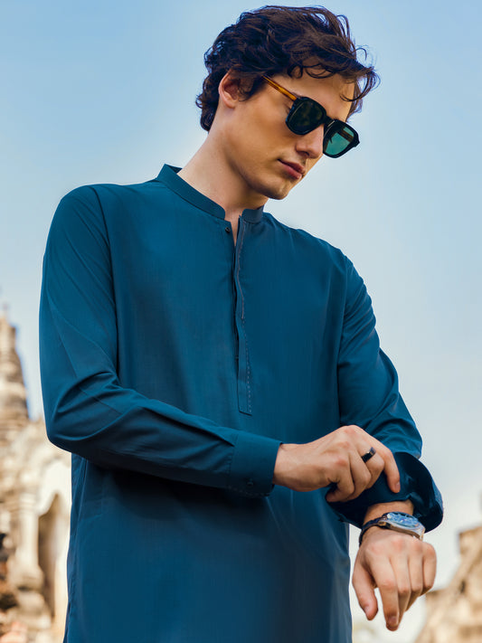 Midnight Blue Blended Kameez Shalwar - ALTET-KS-003