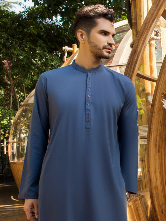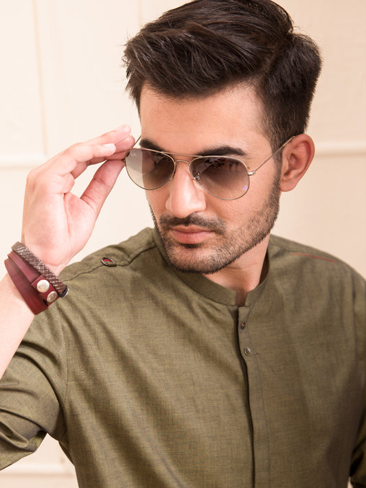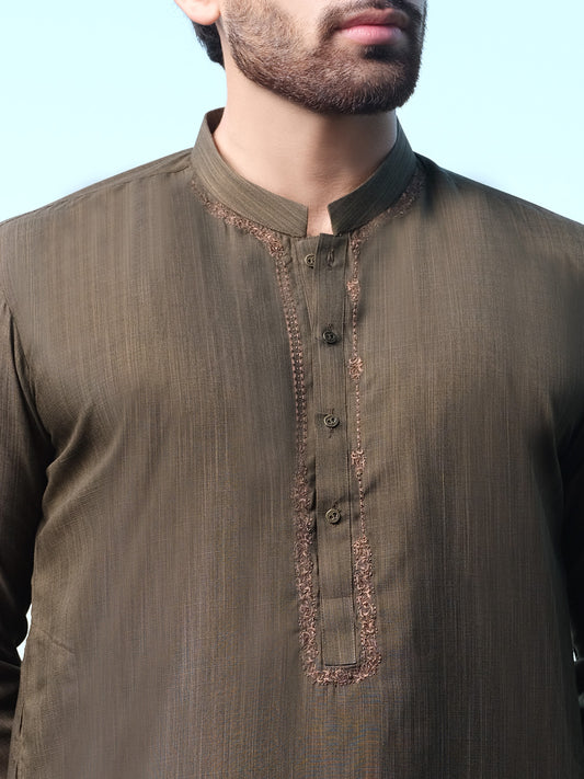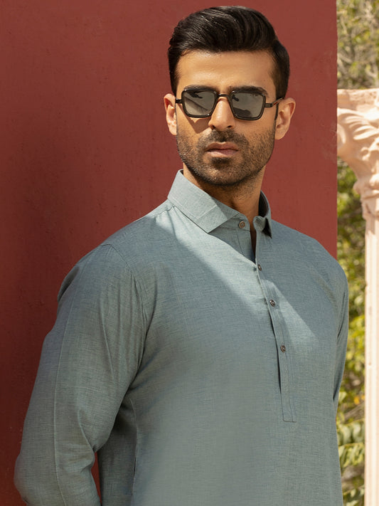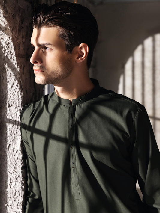 Olive Green Blended Kameez Shalwar - AL-KS-2572