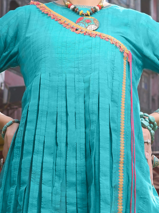 Turquoise Dobby Cotton Tunic - AL-LK-791