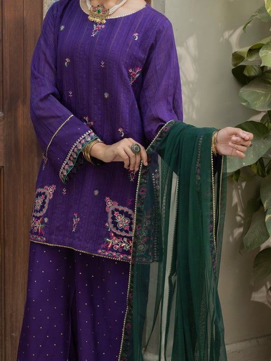 Purple Dobby Square 3 Piece Stitched - ALT-3PS-LS-1133