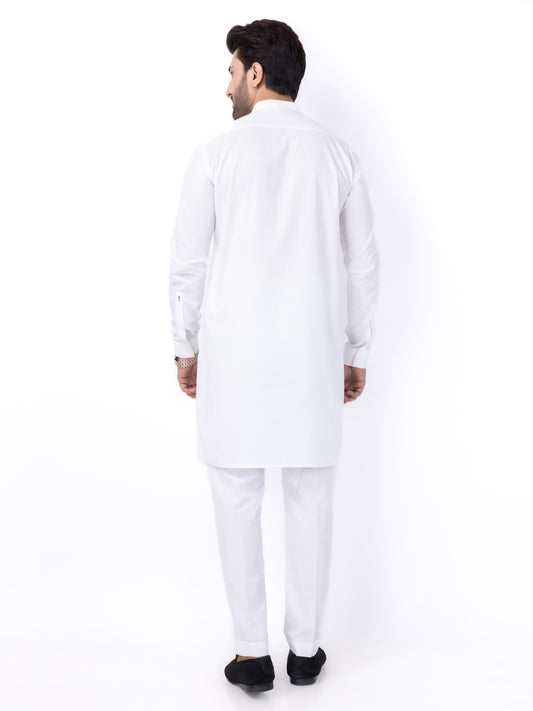 White Poly Cotton Kurta Trouser - AL-KT-3040