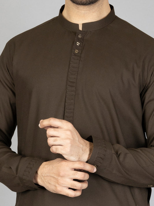 Dark Green Blended Kameez Shalwar - AL-KS-2870