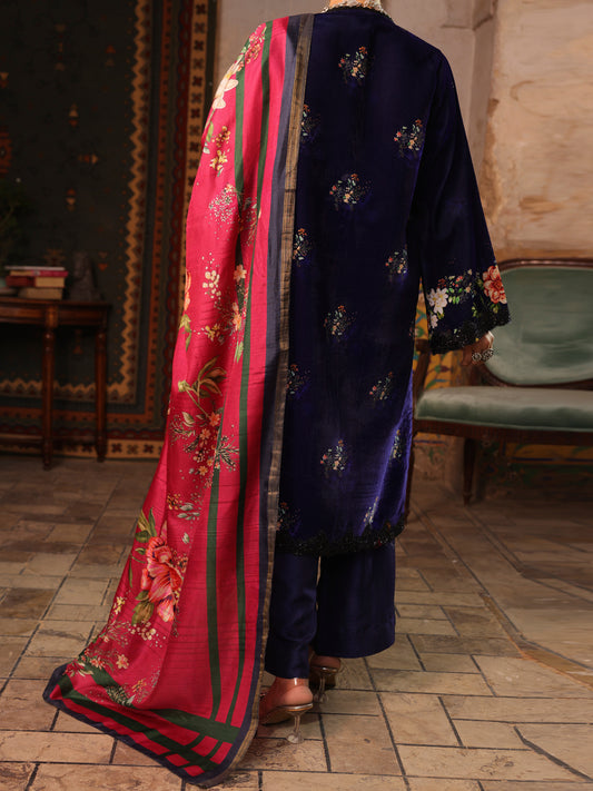 Dark Blue Velvet 3Pc Stitched - AWP-3PS-445